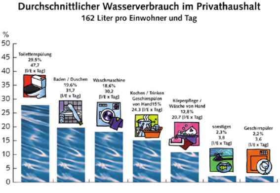 Abfluss fließt, bei der Körperreinigung und bei der Toilette.